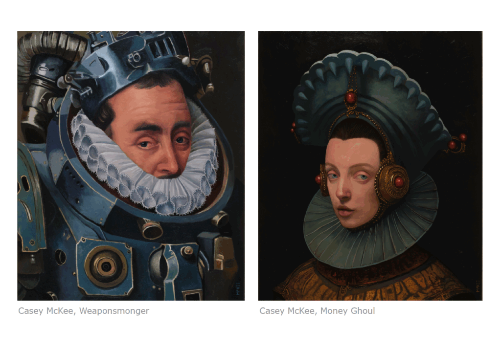 Im November wird der Künstler Casey McKee drei Wochen als artist in residence in Övelgönne 106 zu Gast sein. Der Projektraum wird zu seinem Atelier: McKee arbeitet an seiner Werkreihe The Aristocracy of the Imperishables – einer Auseinandersetzung mit Macht, Privilegien und Tradition. BesucherInnen können ihm während des open atelier dabei zusehen und mit ihm ins Gespräch kommen. Weitere Kunstwerke aus der Reihe sind im Projektraum ausgestellt.